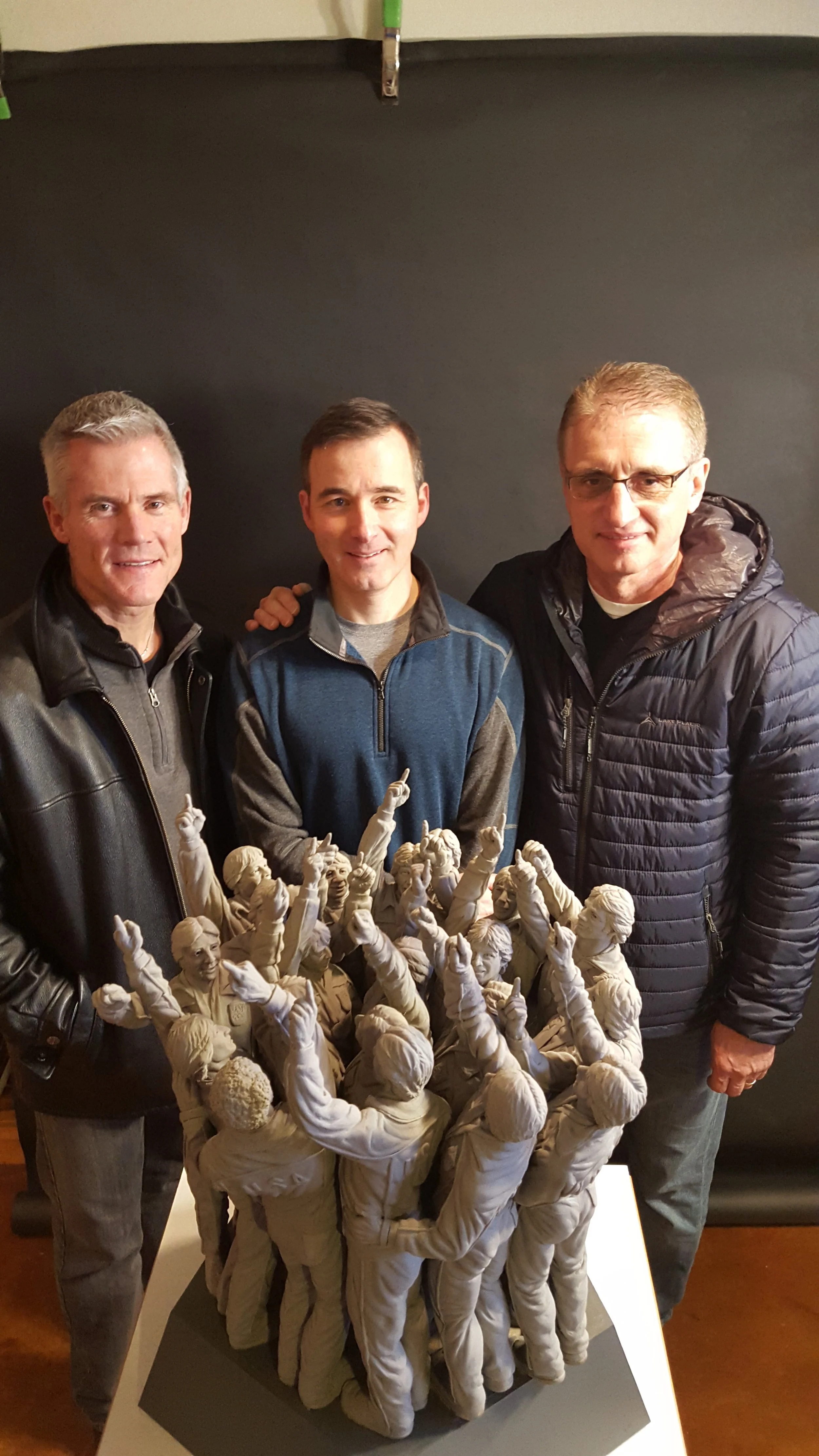 “ This maquette is the prototype for a memorial that will consist of twenty life-size bronze figures depicting the team uniting as one after receiving their gold medals on the podium during the medal ceremony. This sculpture embodies the true spirit and values of the 1980 U.S Olympic Hockey Team as a team and not a group of individuals to include the true joy experienced by those who train hard as a team – who persevere as a team and overcome obstacles and emerge victorious. Engraved in the granite podium will be the names of the hockey team along with quotes from Herb Brooks. ” - Robert Eccleston